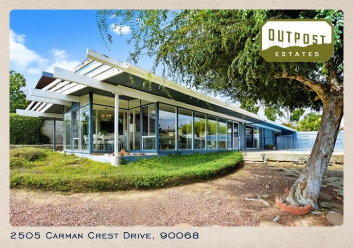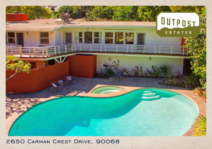This striking mid-century home sits tucked away in the prestigious and highly desirable Hollywood Hills neighborhood of Outpost Estates. This well-known neighborhood is a celebrity enclave located near the famous Hollywood Bowl.Built in 1949, the Architectural style of Jack E. Cofer is demonstrated through the sleek, clean lines, and great energy.